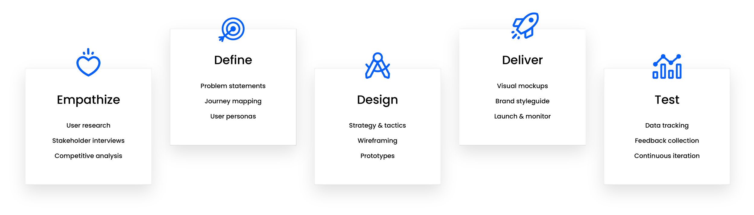 I used a combination of my own front-end skills and AI to efficiently code interactive cards for the homepage. They feature smooth hover effects and visual styling that elevates the user’s first scroll, adding a modern, polished feel to help build trust from the start.
